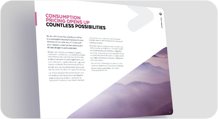 21 CHAMPION GUIDES CONSUMPTION PRICING OPENS UP COUNTLESS POSSIBILITIES No one will tell you that adopting or shifting to a consumption-based pricing model is easy. However, it’s the right move if it aligns with your company’s overall product strategy and delivers stronger value to customers. Startups may find it less complicated to adopt a consumption model because everything is greenfield. A try-before-you-buy approach may make it easier to attract customers, but don’t forget that you will chase revenue for a period of time until usage starts to grow consistently. Expectations must be set for a longer ramp-up time, and you must have enough funding and investor buy-in to support this strategy. For mature companies, the process requires plans for handling current accounts and bookings and understanding what a hybrid model looks like. The benefits are that you have time to hone your consumption model to suit your business and can transition sales and finance teams to this new way of operating over time. Remember that everything starts and ends with data. All data must be accessible from a centralized location and shared securely without friction or integration headaches. Today, that means you must build solutions on a cloud data platform if you want to support growth and enable pricing models that protect margins and drive new revenue. The end result is delivering more value to current customers, attracting new customers, and opening up new revenue opportunities—all of which are truly worth the shift. 21 CHAMPION GUIDES