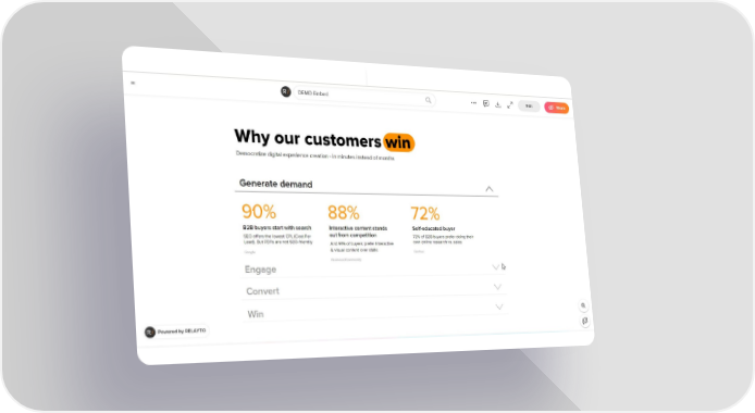 Before After Classic static PDF It takes from 4 minutes to 4 hours to create this microsite with RELAYTO using PDF as an input Rapid Interactive PDF Master hub Microsite Presentation F active Watch how static PD turns into an inter microsite in just 4 minutes Navigation Interactive CTAs Content collections Video backgrounds Analytics dashboard Lead magnets Embeds SEO Conversion Auto-animations Access-control